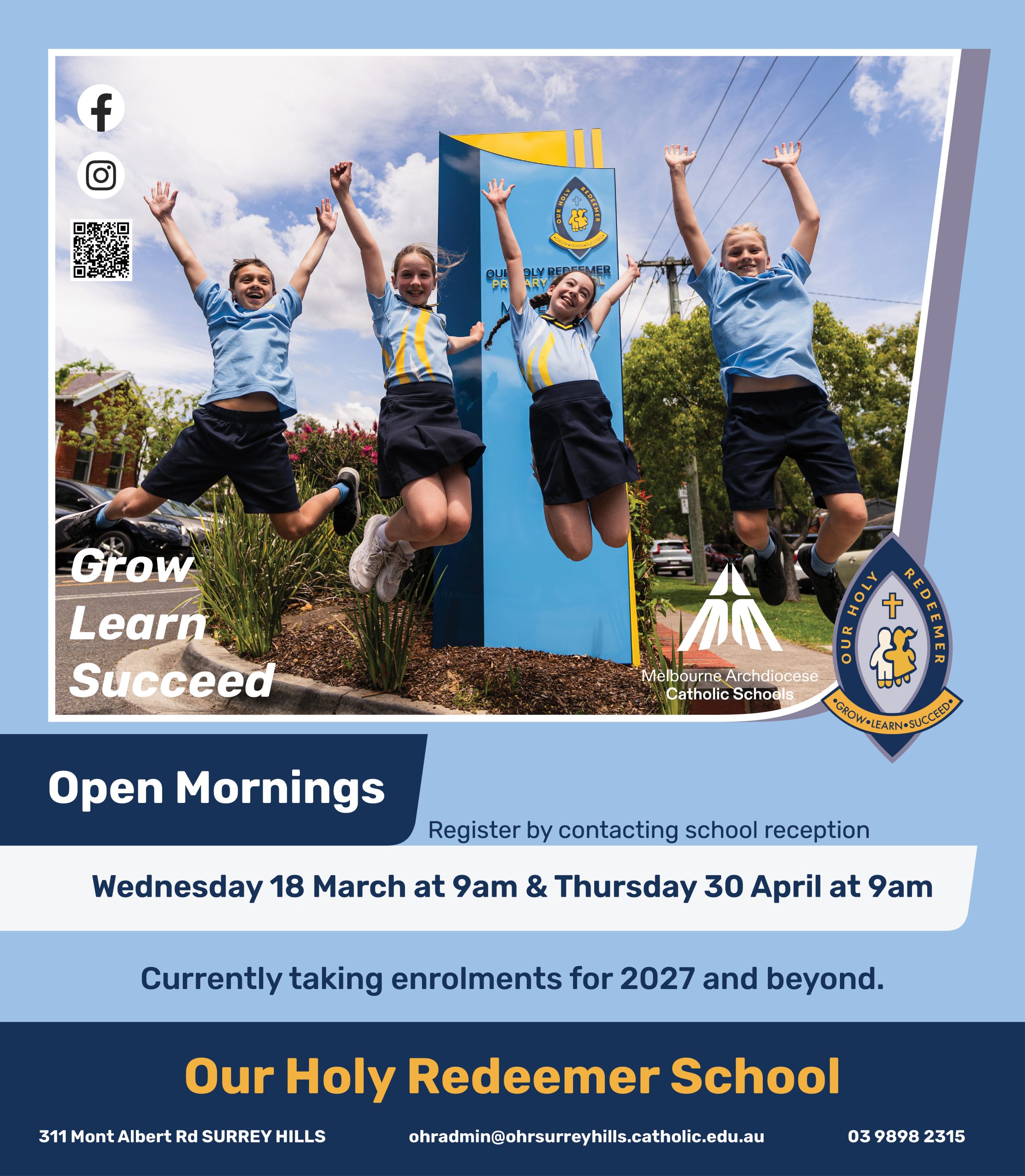 At Our Holy Redeemer we are always proud to showcase our student learning, teachers, programs and great facilities.  We encourage you to contact our school office on 9898 2315 to express your interest in attending one of our Open Mornings.